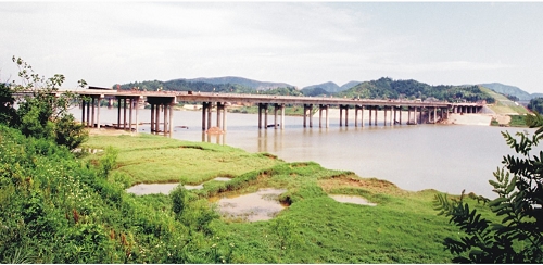 湖南湘(潭)耒(陽)高速洣水河大橋 才喲個(gè)頂推法施工工藝,2000年12月建成通車。