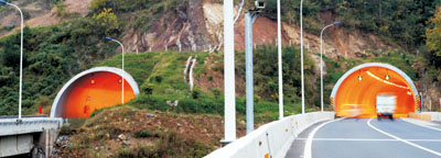 納黔高速敘嶺關(guān)隧道 隧道長4067米,2012年10月建成通車。