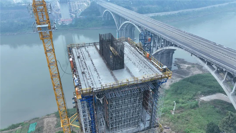 隆黃鐵路隆敘段瀘州沱江鐵路特大橋主橋?qū)侔嗡髅嫘崩瓨?酒樽造型),是國內(nèi)同類型最大跨度的鐵路單索面斜拉橋。該橋既是項(xiàng)目部的重點(diǎn)工程,也是全線的控制性工程。10#墩、11#墩0#塊件長20m,高14m,頂寬15.8m,底寬11.7m,設(shè)計(jì)混凝土方量為2400?,本次10#墩澆筑混凝土為1050?,澆筑高度為7.8-14m。此次澆筑的順利完成,標(biāo)志著沱江鐵路特大橋上部構(gòu)造施工拉開序幕,項(xiàng)目整體施工取得階段性勝利,為沱江鐵路特大橋在2023年完成建設(shè)任務(wù)奠定了堅(jiān)實(shí)的基礎(chǔ)。