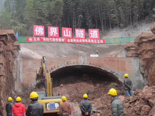 為保證打好佛界山隧道的第一仗,從征地拆遷、施工便道建設(shè)等方面,我司精心組織、標準化施工,克服征地拆遷難度大、機械材料運輸不便、雨季施工困難大、洞口遇地質(zhì)滑坡體等困難,迅速展開前期臨建工程和洞口地質(zhì)加固施工,歷經(jīng)近半年的努力使佛界山隧道進口洞身工程基本具備了進洞條件。