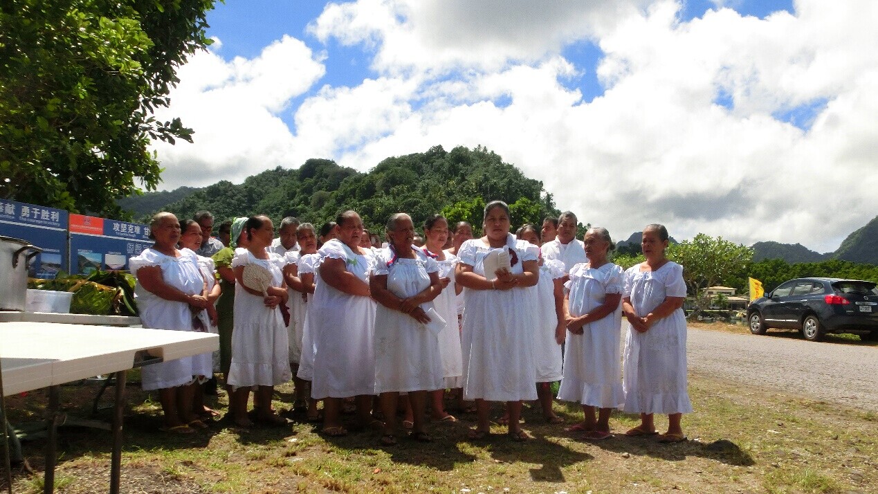9點(diǎn)15分,會(huì)場(chǎng)已坐滿了觀禮嘉賓,典禮正式開始,首先進(jìn)行的是科斯雷州傳統(tǒng)的祈禱儀式。科斯雷教堂的神父走向演講席,開始宣讀祈禱詞,為援密項(xiàng)目進(jìn)行祈禱祝福,會(huì)場(chǎng)上全體人員同時(shí)閉目靜默,十分莊嚴(yán)神圣。緊接著在神父的帶領(lǐng)下,身穿白衣的科斯雷教堂的合唱團(tuán)成員唱起了贊歌,歌聲空靈婉轉(zhuǎn),表達(dá)了科斯雷人民對(duì)援密項(xiàng)目的祝福禮贊。