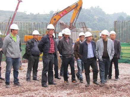 10月18日上午,鐵路總公司質(zhì)監(jiān)總站檢查組一行在成貴公司、監(jiān)理、設(shè)計(jì)單位相關(guān)人員的陪同下到達(dá)成貴六標(biāo)一分部,在集團(tuán)公司副總經(jīng)理劉志剛、副總工程師羅朝基、成貴六標(biāo)項(xiàng)目經(jīng)理胡鶴、一分部經(jīng)理張捷等人的帶領(lǐng)下先后檢查了我分部的拌和站、鋼筋加工場(chǎng)以及全線控制性工程——宜賓東站。