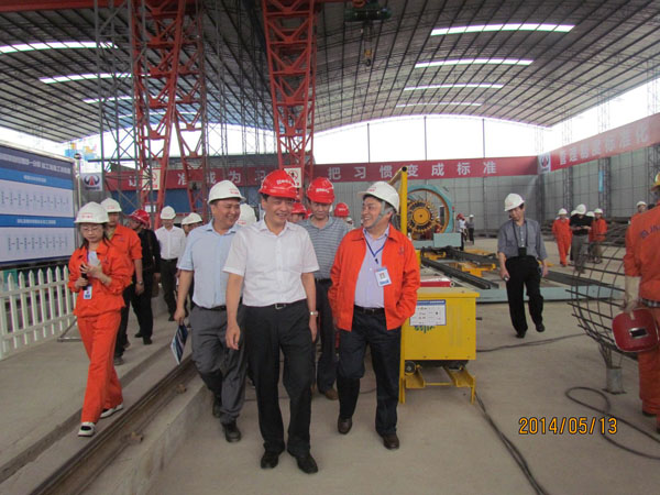 2014年5月13日中午1點(diǎn)30分,成都鐵路局副局長(zhǎng)、成貴鐵路公司董事長(zhǎng)張國(guó)力帶領(lǐng)成貴鐵路全線觀摩團(tuán)隊(duì)到我部觀摩標(biāo)準(zhǔn)化鋼筋加工場(chǎng)。