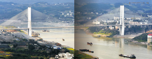 萬里長江第一橋,全長931.42米,主跨460米,雙塔雙索面PC砼斜拉橋,2008年4月建成通車。獲中國公路學(xué)會科學(xué)技術(shù)三等獎。