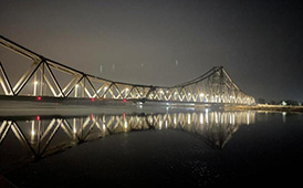 2月28日,在約烏拉達(dá)特大橋金陽岸的試吊平臺上,110t的配重在纜索系統(tǒng)的牽引下,緩緩的提升到預(yù)定高度,并按既定方向移動