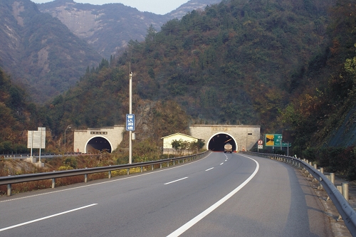 達(dá)陜高速張家灣隧道 張家灣1號連拱隧道長230米,張家灣2號連拱隧道長229米,2012年4月建成通車。