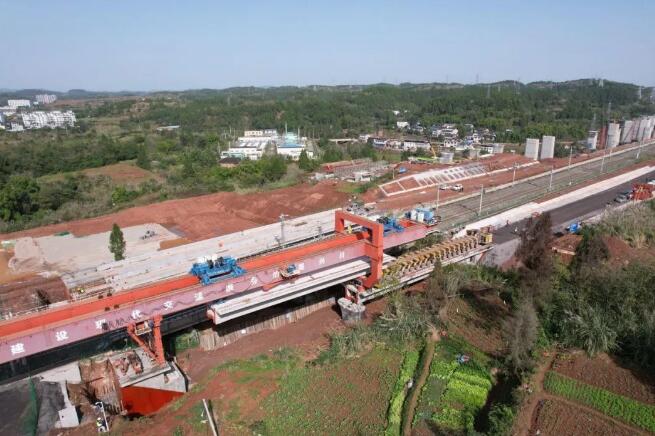11月16日中午12:08分,隨著架梁機將最后一榀重約370噸、長32米的單線預(yù)制箱梁、穩(wěn)穩(wěn)落在下行聯(lián)絡(luò)線