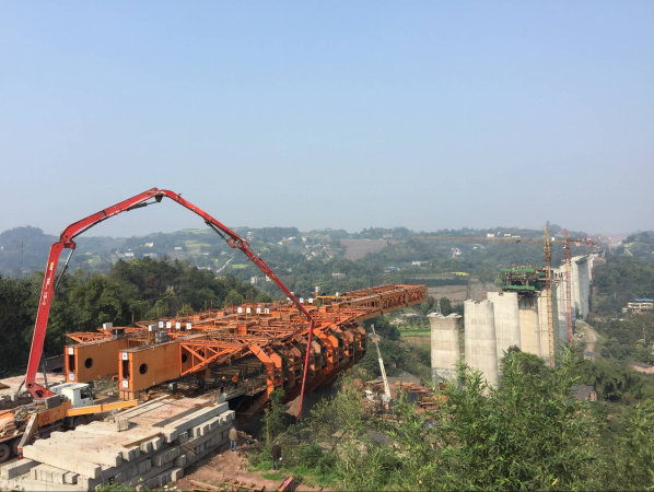 春泥護(hù)花、艷陽普照,三月的成貴高鐵在經(jīng)歷了春節(jié)的休假后正逐步進(jìn)入施工高潮。2016年3月18日,宜賓東站2號(hào)特大橋29#—30#墩的簡支箱梁就在工人們高漲的施工熱情中首次利用移動(dòng)模架技術(shù),僅用時(shí)12小時(shí)就完成了207方的澆筑。