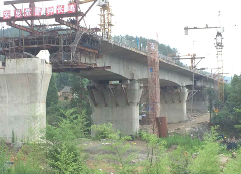 在合攏前,使用合攏段兩共軛懸臂端臨時(shí)連接,保持相對(duì)固定,以防止合攏段混凝土在澆注及初凝過(guò)程中發(fā)生變形。同時(shí),在現(xiàn)場(chǎng)技術(shù)管理人員監(jiān)督和指導(dǎo)下,再經(jīng)過(guò)鎖定勁性骨架、張拉合攏段齒塊之后,開(kāi)始澆筑混凝土。在經(jīng)過(guò)約4個(gè)小時(shí)緊張施工之后,劍門(mén)關(guān)大橋中跨順利合龍,這標(biāo)志著大橋主體工程基本完工。