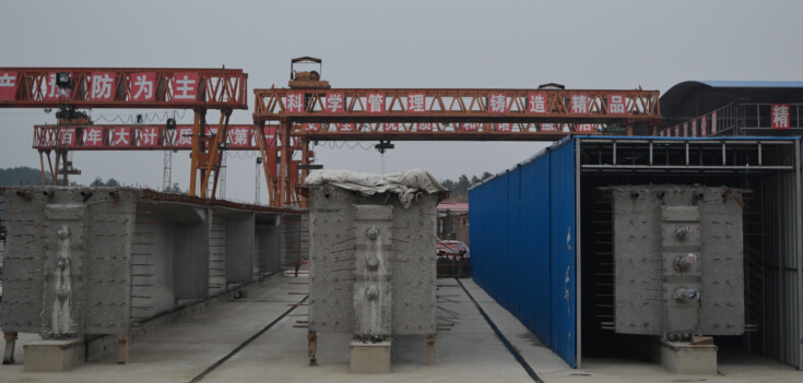 自2013年8月進入麻武高速后,T梁預制場與項目部駐地同步規(guī)劃建設。于12月份正式投產(chǎn)生產(chǎn)梁板。為提升梁板質量,加快生產(chǎn)形象進度,積極響應業(yè)主標準化施工要求,首次引進鋼筋數(shù)控彎曲機,數(shù)控張拉壓漿設備,T梁養(yǎng)生夏季噴淋養(yǎng)護、冬季蒸汽養(yǎng)護設施,保持一年四季進行T梁生產(chǎn)作業(yè)。為追趕晚一、三標半年建設工期提供保障。